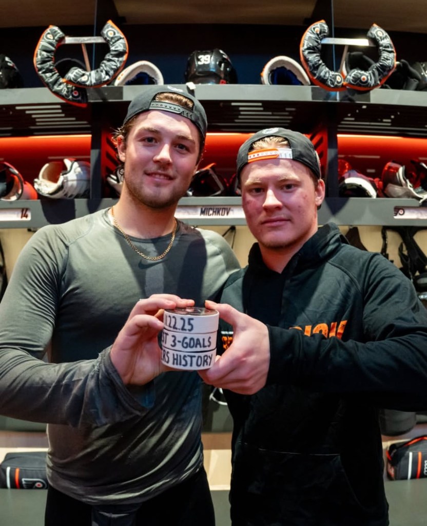 These 2 out of 3 goals Foerster’s last 2 games set a franchise record for the Flyers, as his 2 goals and Michkov’s 1 were only 26 seconds apart.